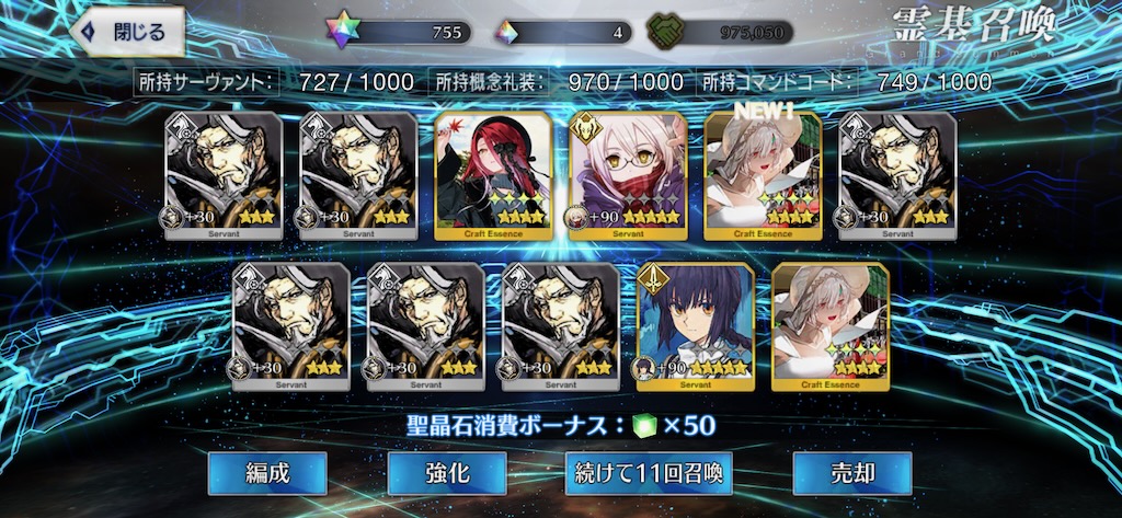 ちなみに、概念礼装はあと、宇津見エリセ、フランケンシュタイン、ヤマトタケルが引けていない。というか、ヤマトタケルは概念礼装よりも先にサーヴァントの方がきちゃったのよ・・・。