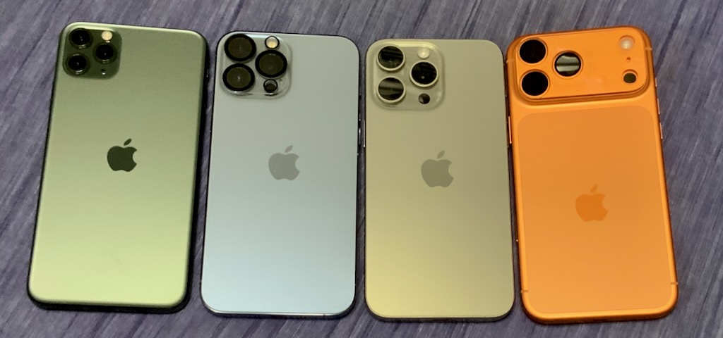 ということで、左から、11、13、15、17です。13、15はデータSIMを入れてある、11は・・・、まあ、いいか。