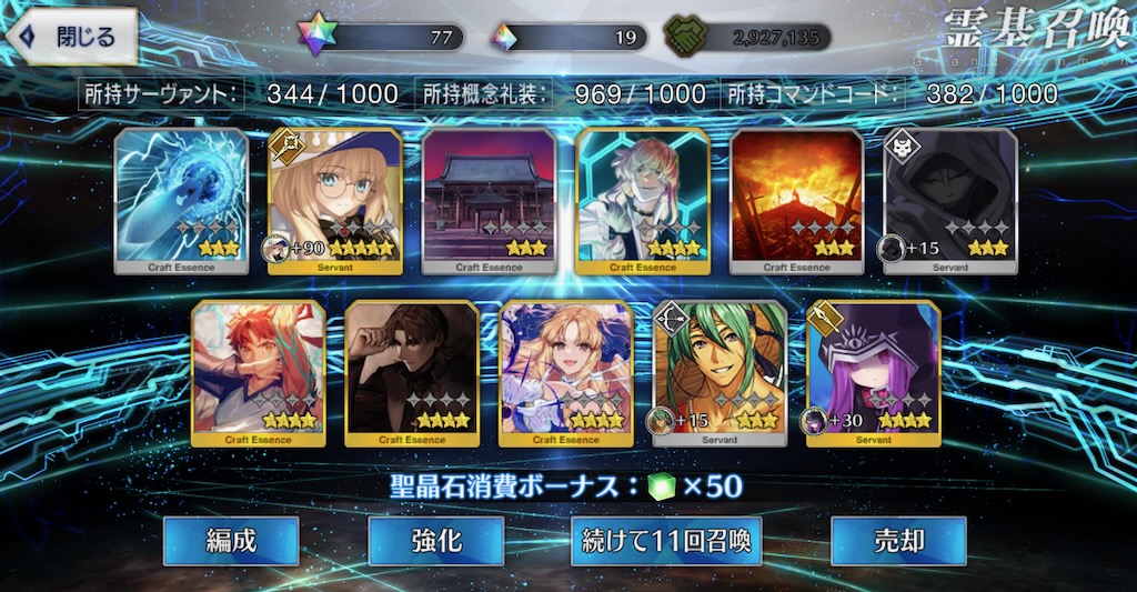 OVER THE SAME SKY-NOVENBER-ピックアップを引いたのだが・・・アーチャー戴冠戦で稼いだ聖晶石の55連で星4も星5も引けなかったのよ・・・。まあ、あと「英霊星行」礼装はアンドロメダとイリヤのどちらか当たればコンプリートするけど・・・それでもサーヴァントが当たらんのは悲しい・・・